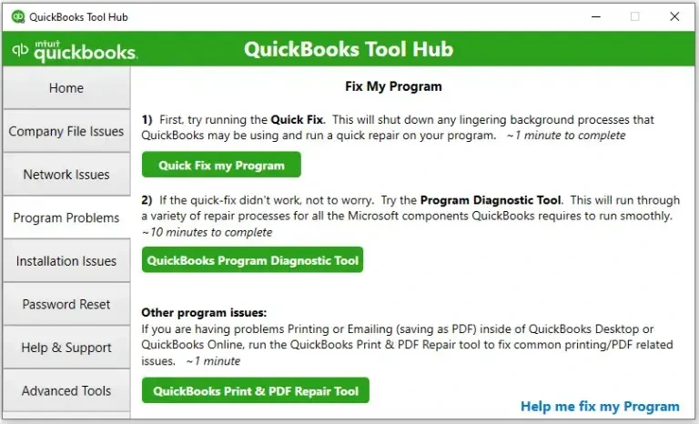 Step 1: Use the PDF and Print Repair Tool within the QuickBooks Tool Hub